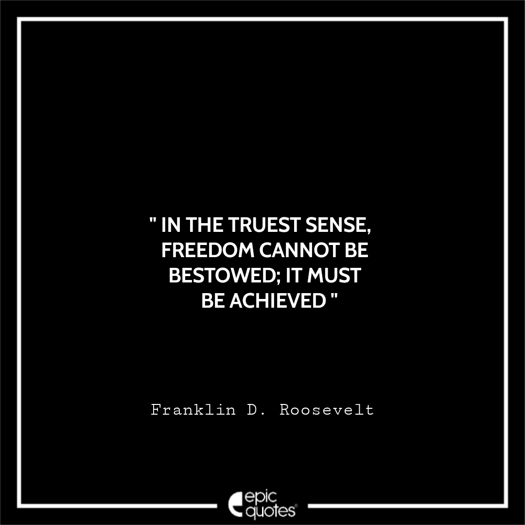 27. In the truest sense, freedom cannot be bestowed; it must be achieved. -Franklin D. Roosevelt