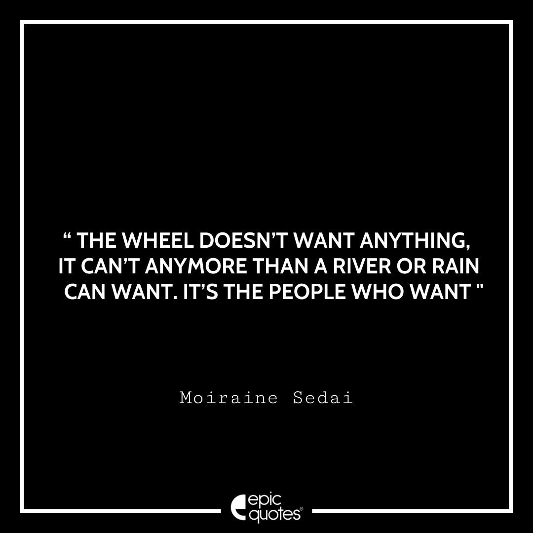 34. The wheel doesn’t want anything, it can’t anymore than a river or rain can want. It’s the people who want – Moiraine Sedai