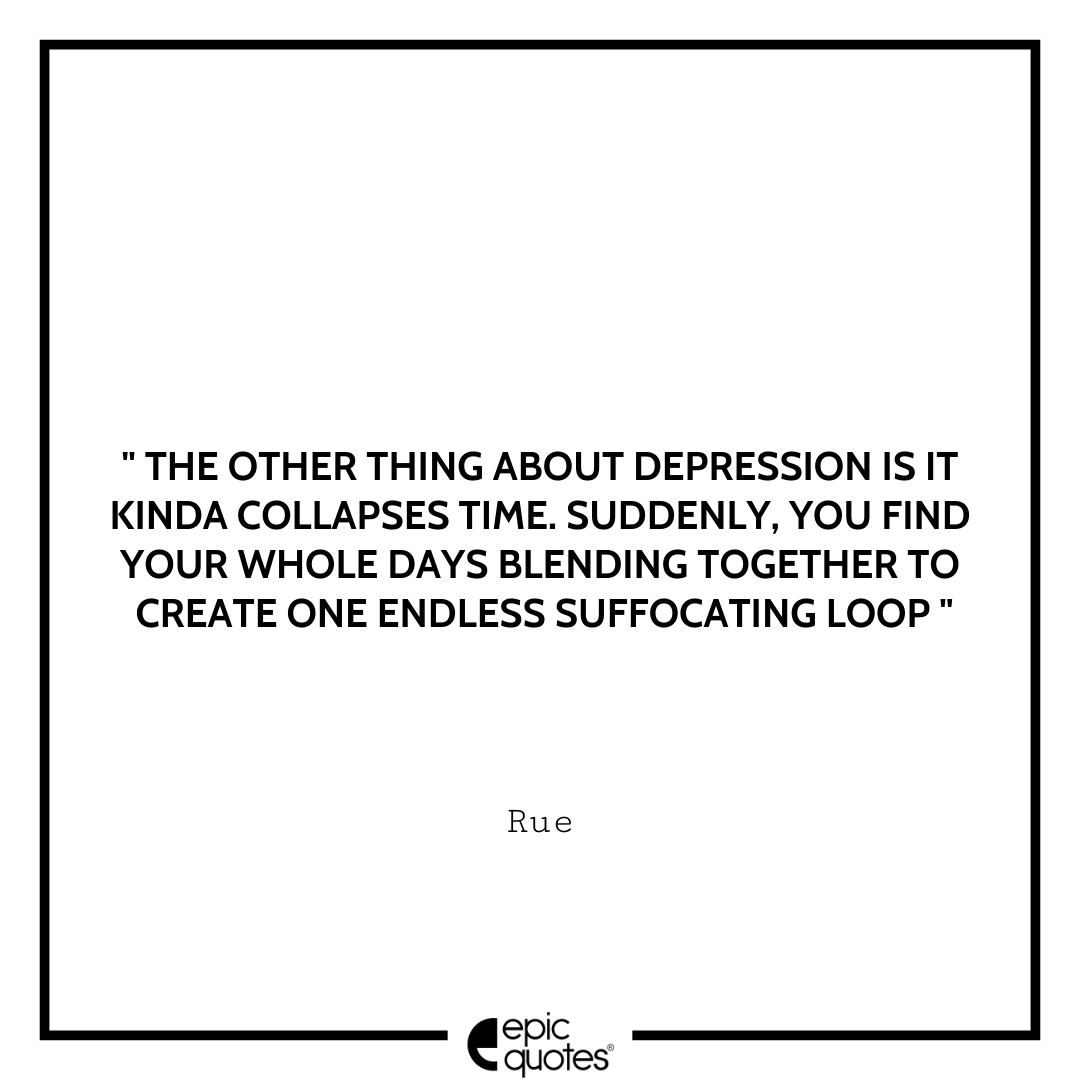 12 The other thing about depression is it kinda collapses time. Suddenly, you find your whole days blending together to create one endless suffocating loop. -Rue Bennett