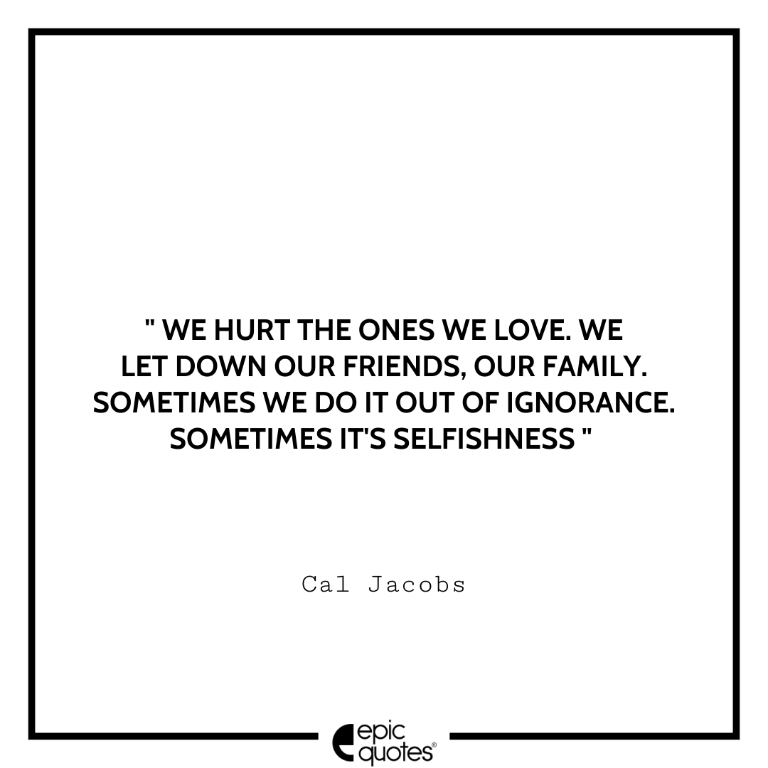 13 We hurt the ones we love. We let down our friends, our family. Sometimes we do it out of ignorance. Sometimes it’s selfishness. -Cal Jacobs