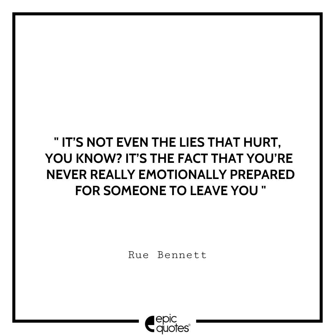 17 It’s not even the lies that hurt, you know? It’s the fact that you’re never really emotionally prepared for someone to leave you. –Rue Bennett