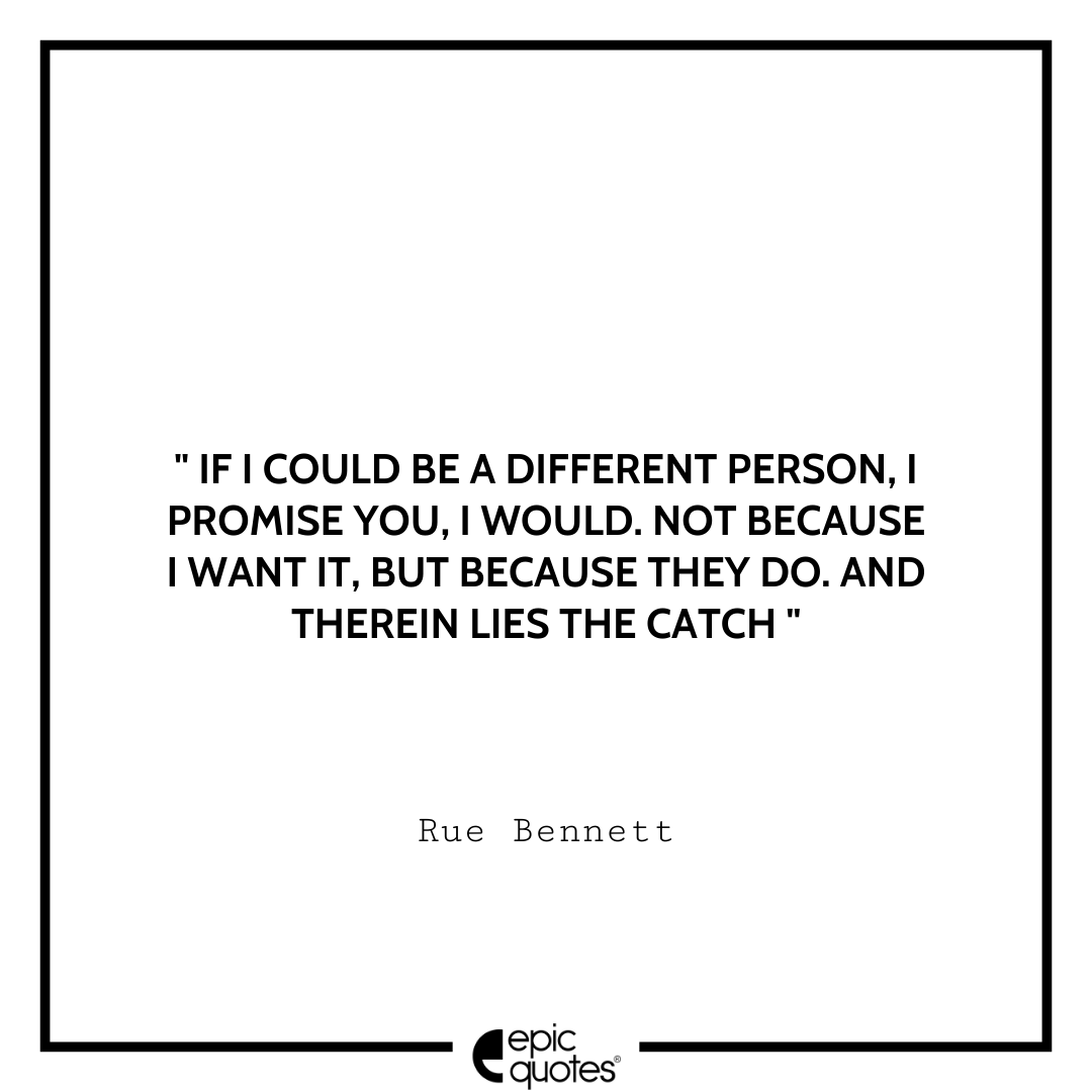 20. If I could be a different person, I promise you, I would. Not because I want it, but because they do. And therein lies the catch. -Rue Bennett