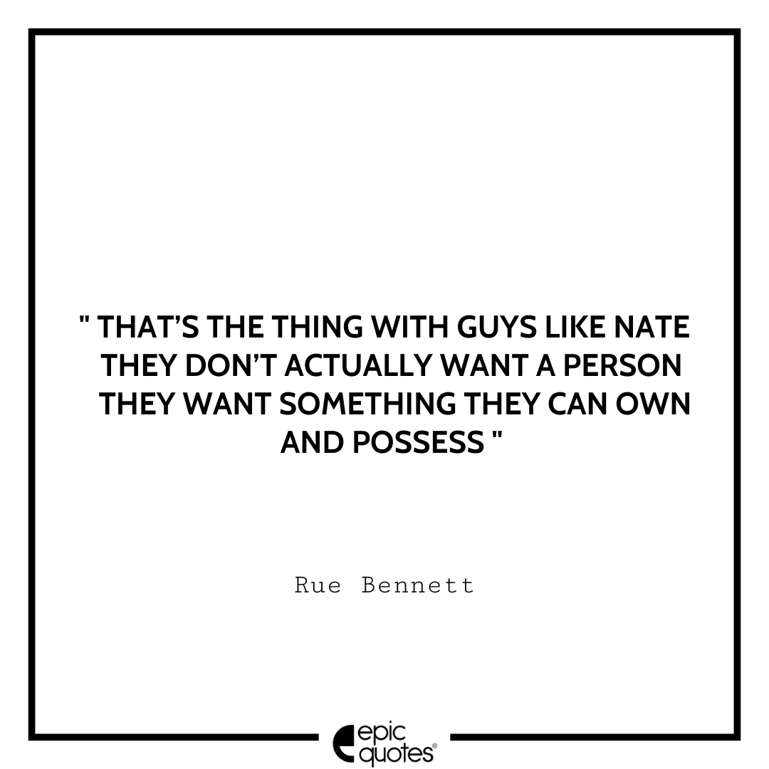 21 That’s the thing with guys like Nate. They don’t actually want a person. They want something they can own and possess. -Rue Bennett