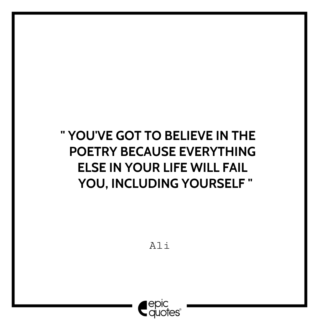 23 You’ve got to believe in the poetry because everything else in your life will fail you, including yourself. -Ali