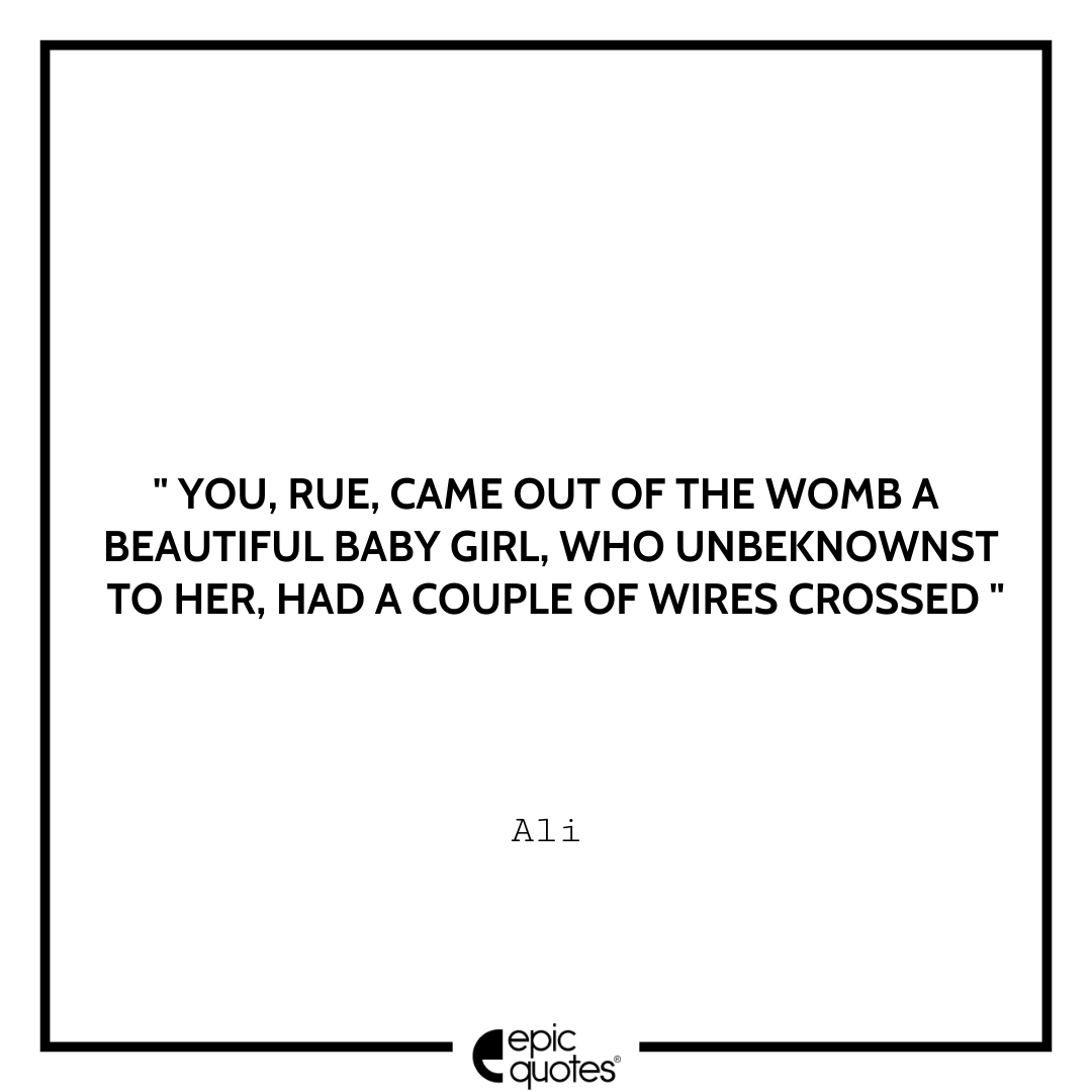 25 You, Rue, came out of the womb a beautiful baby girl, who unbeknownst to her, had a couple of wires crossed. -Ali