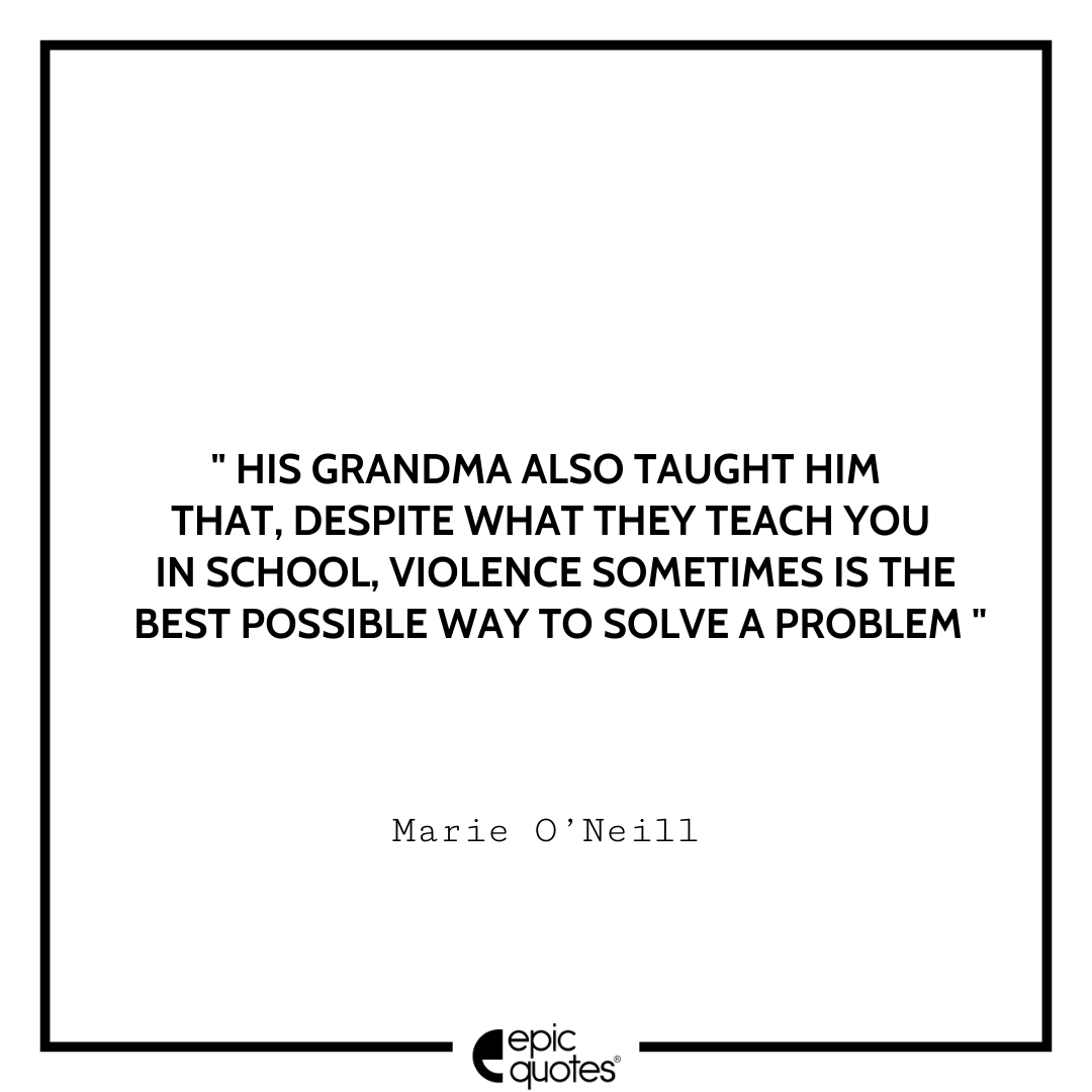 30 His grandma also taught him that, despite what they teach you in school, violence sometimes is the best possible way to solve a problem. -Marie O’Neill