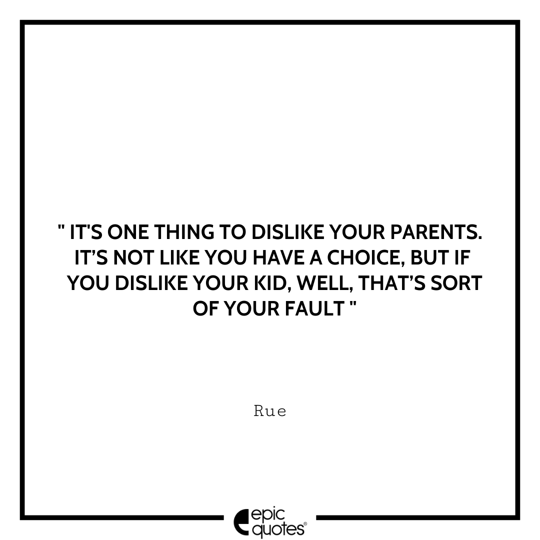 38 It’s one thing to dislike your parents. It’s not like you have a choice, but if you dislike your kid, well, that’s sort of your fault. -Rue