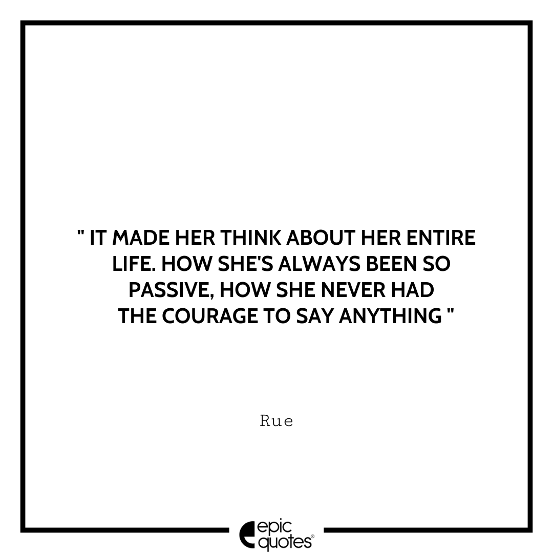 40 It made her think about her entire life. How she’s always been so passive, How she never had the courage to say anything. -Rue