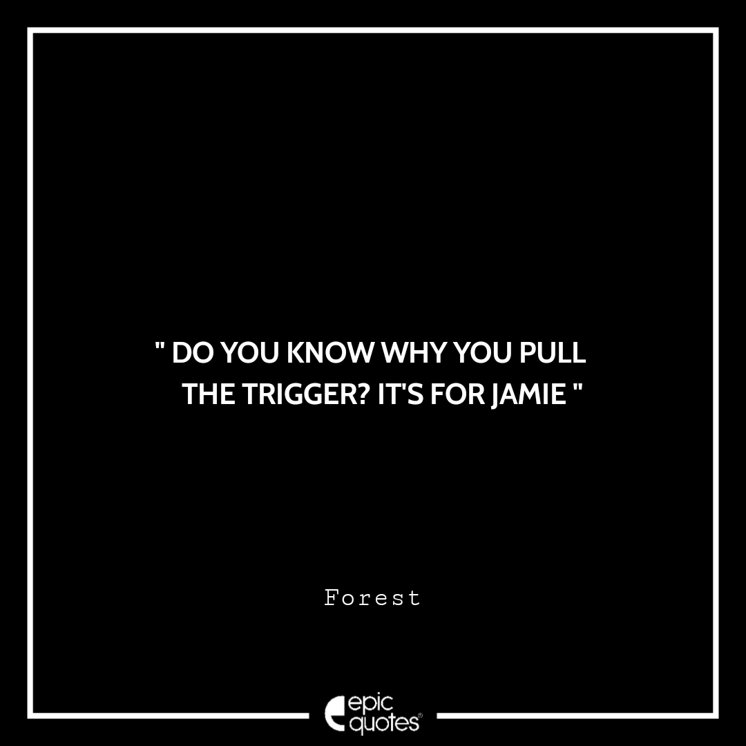 1. Do you know why you pull the trigger? It’s for Jamie. -Forest