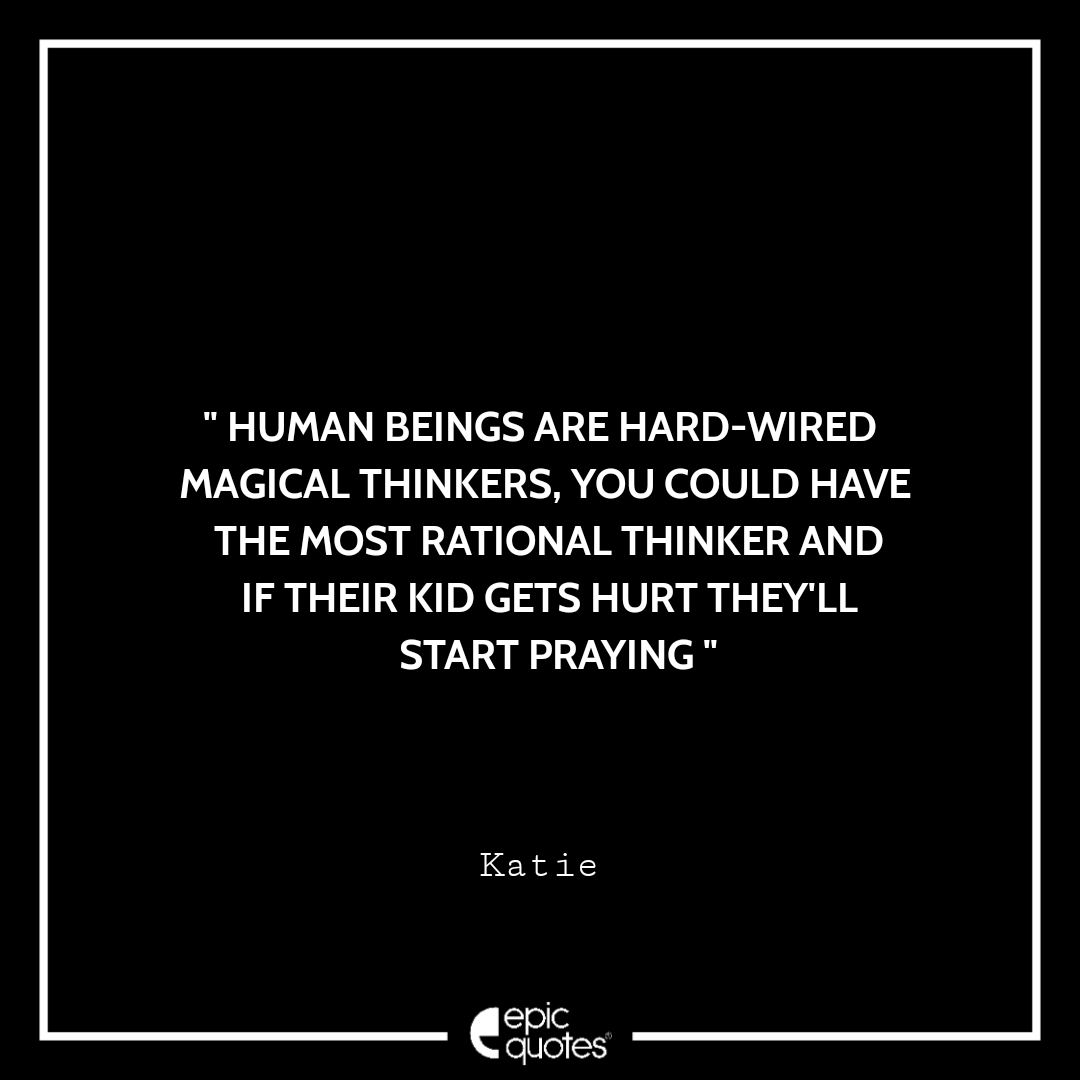 6 Human beings are hard-wired magical thinkers, you could have the most rational thinker and if their kid gets hurt they’ll start praying. -Katie