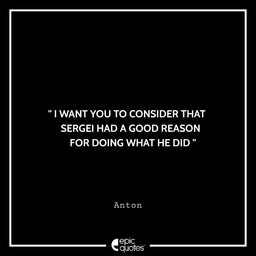 8. I want you to consider that Sergei had a good reason for doing what he did. -Anton