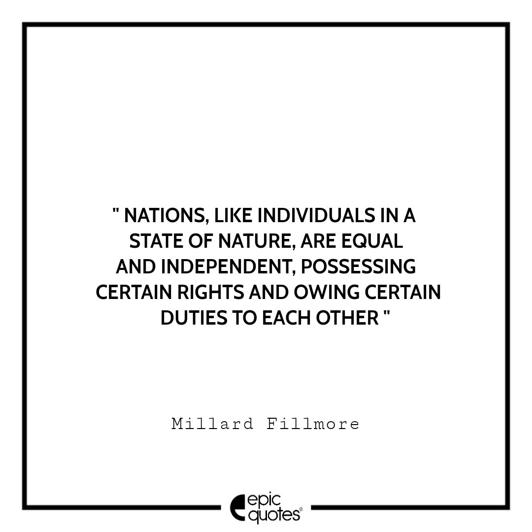 5. Nations, like individuals in a state of nature, are equal and independent, possessing certain rights and owing certain duties to each other. -Millard Fillmore