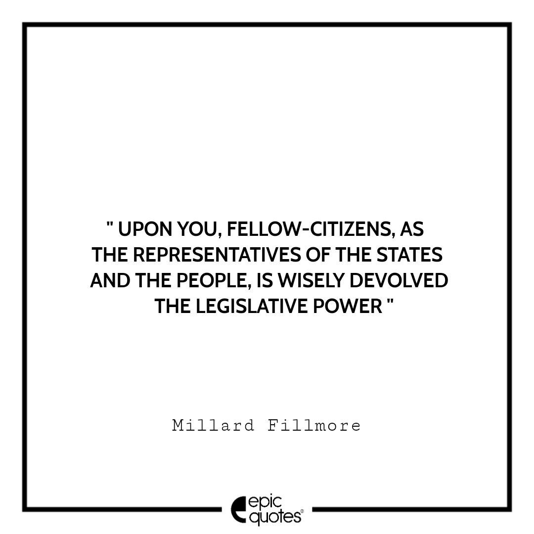 8 . Upon you, fellow-citizens, as the representatives of the States and the people, is wisely devolved the legislative power. -Millard Fillmore