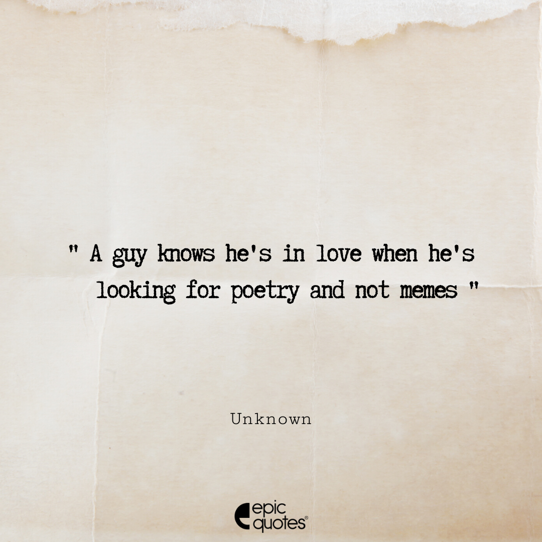 ” A guy knows he’s in love when he’s looking for poetry and not memes “