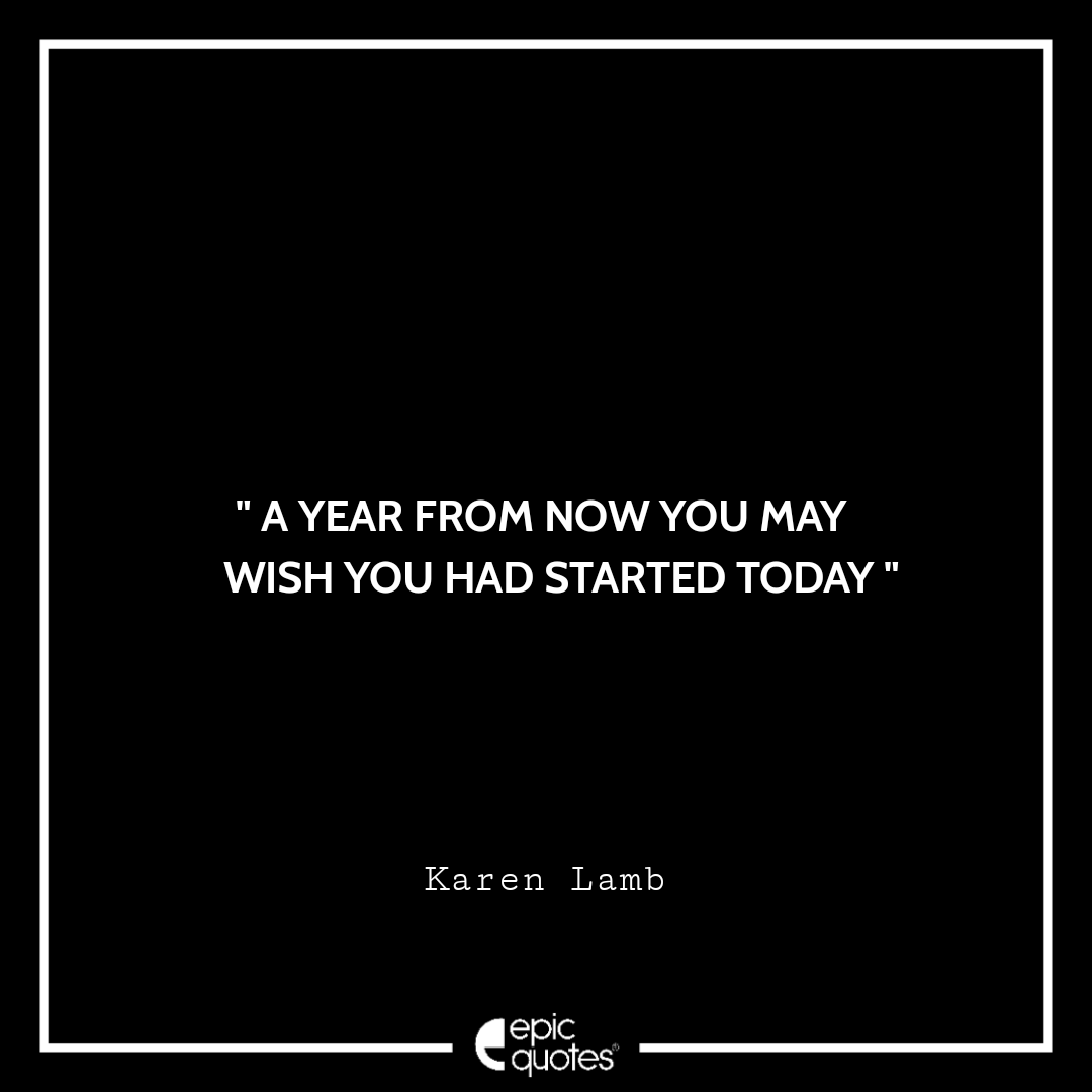Categories MondayA year from now you may wish you had started today. –Karen Lamb Post author By Shubham Post date March 31, 2022 A year from now you may wish you had started today. –Karen Lamb” A year from now you may wish you had started today. –Karen Lamb “ Lets be social: 1.4M+ Fans 450K+ Followers ← If I had eight hours to chop down a tree, I’d spend six hours sharpening my ax. –Abraham Lincoln → Never limit yourself because of others’ limited imagination. –Mae Jemison Related articles Nothing will work unless you do. –Maya Angelou It’s not knowing what to do, it’s doing what you know. –Tony Robbins Too many of us are not living our dreams because we are living our fears. –Les Brown Let no feeling of discouragement prey upon you, and in the end you are sure to succeed. –Abraham Lincoln Knowing trees, I understand the meaning of patience. Knowing grass, I can appreciate persistence. –Hal Borland The way to get started is to quit talking and begin doing. –Walt Disney