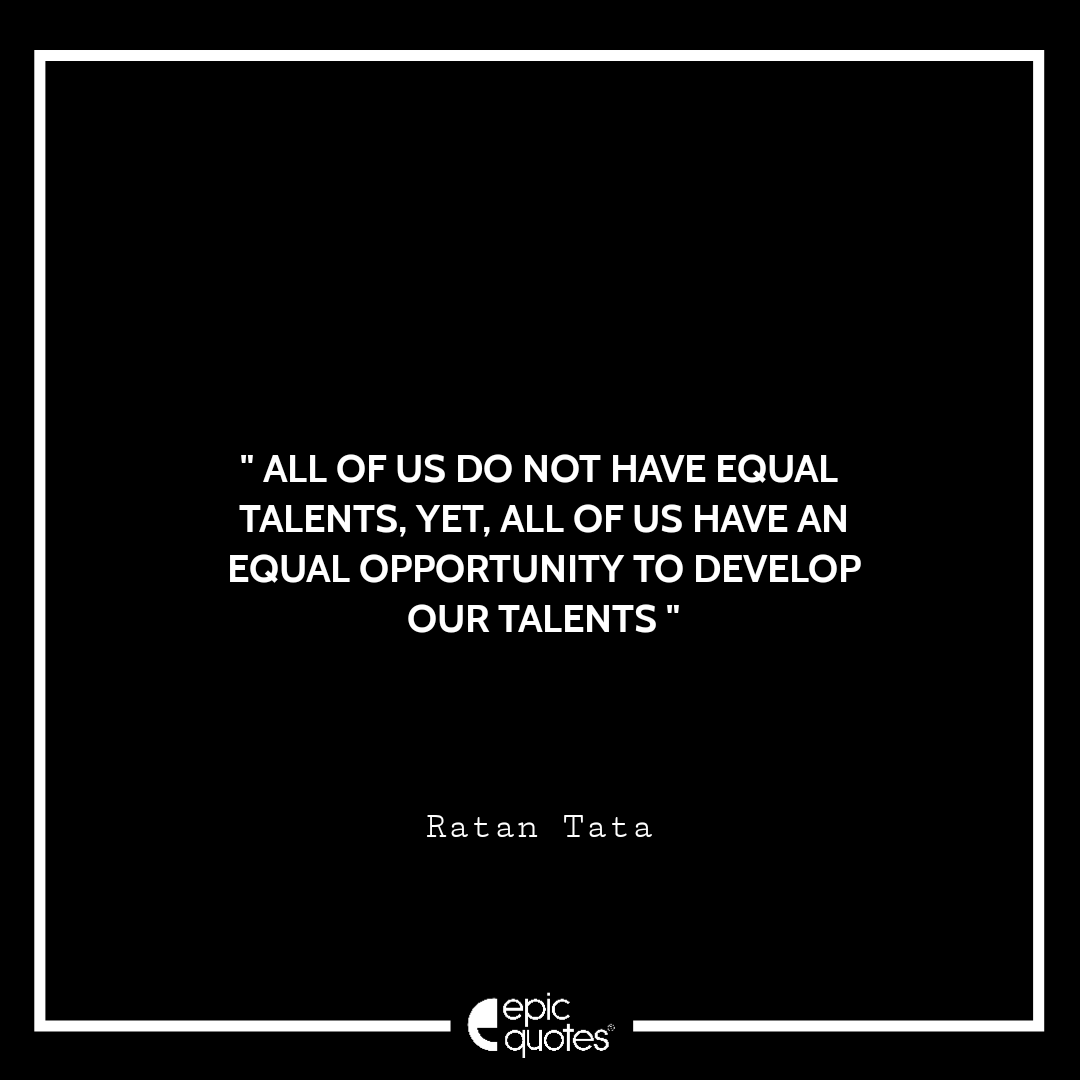 Categories InspirationalAll of us do not have equal talents. Yet, all of us have an equal opportunity to develop our talents Post author By Chirag Malik Post date June 12, 2020 All of us do not have equal talents. Yet, all of us have an equal opportunity to develop our talents” All of us do not have equal talents. Yet, all of us have an equal opportunity to develop our talents “ Lets be social: 1.4M+ Fans 450K+ Followers Chirag MalikMeet Mr Sarcasm, always giving advice – taking none, a wannabe engineer and a bonafide curator who’s full of quirks! Ps : No one really listens to him though ;)Connect with me:[email protected] View Posts → ← Ups and downs in life are very important to keep us going → None can destroy iron, but its own rust can. Likewise, none can destroy a person, but his own mindset can Related articles All progress takes place outside the comfort zone Do one thing every day that scares you The ones who are crazy enough to think they can change the world, are the ones that do If you are not willing to risk the usual, you will have to settle for the ordinary I owe my success to having listened respectfully to the very best advice, and then going away and doing the exact opposite Success is walking from failure to failure with no loss of enthusiasm