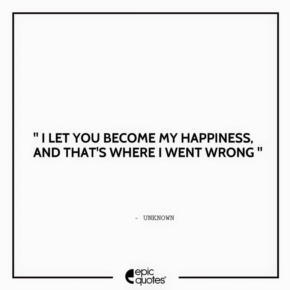 " I let you become my happiness and that is where I went wrong "