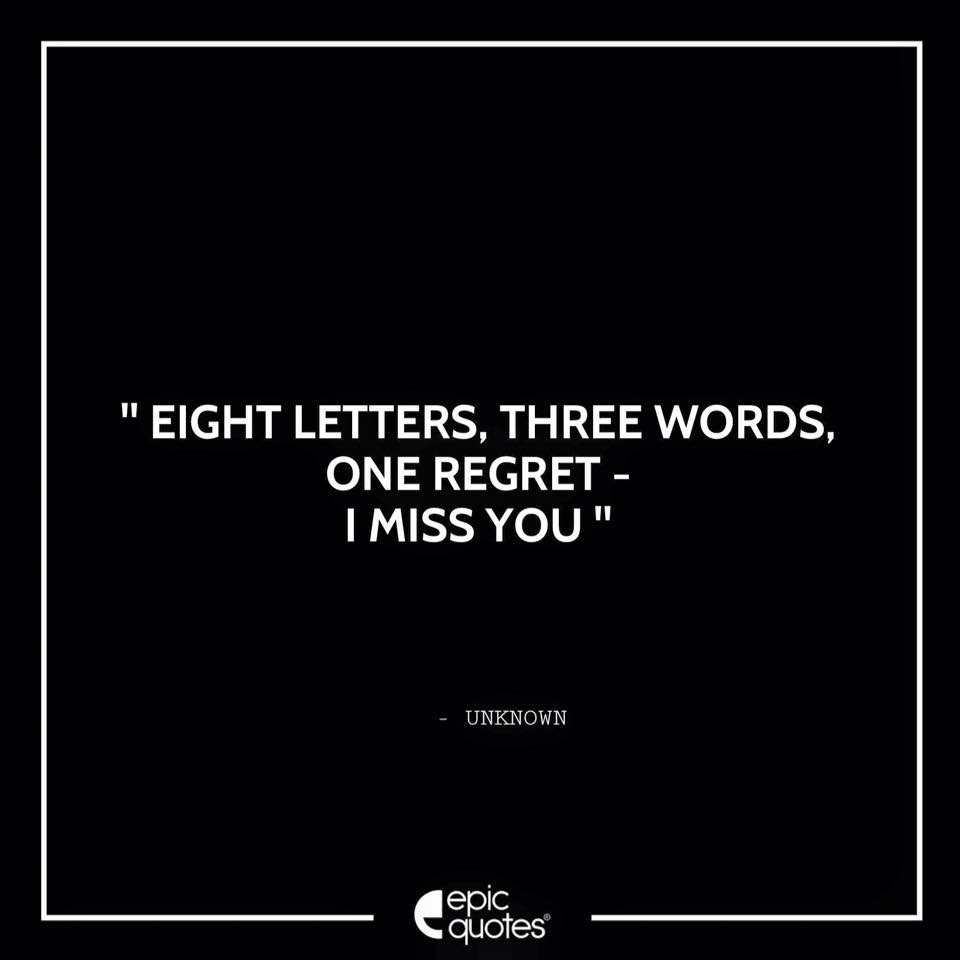 " Eight letters three words one regret I miss you "