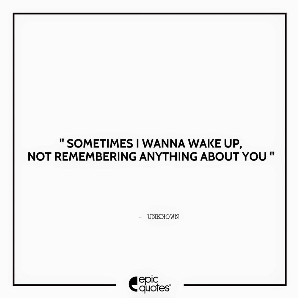 " Sometimes I wanna wake up not remembering anything about you "