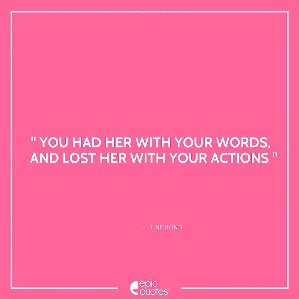" You had her with your words and lost her with your actions "