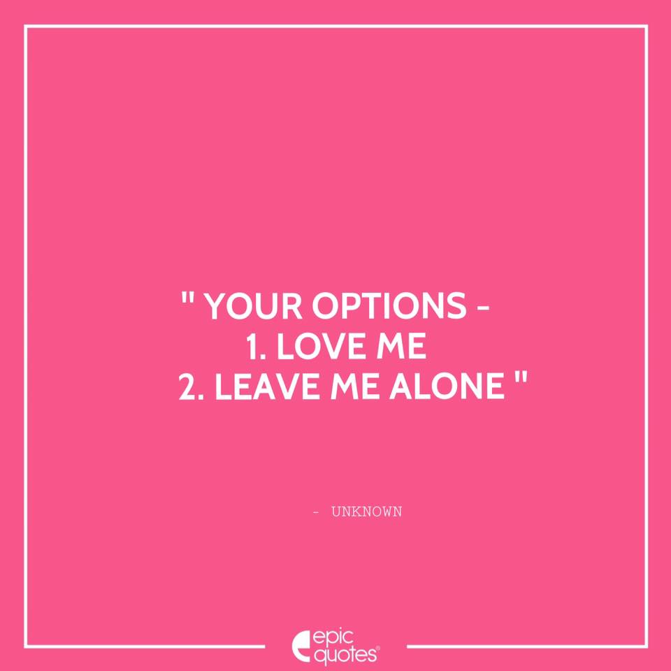" Your options 1 Love me 2 Leave me alone "