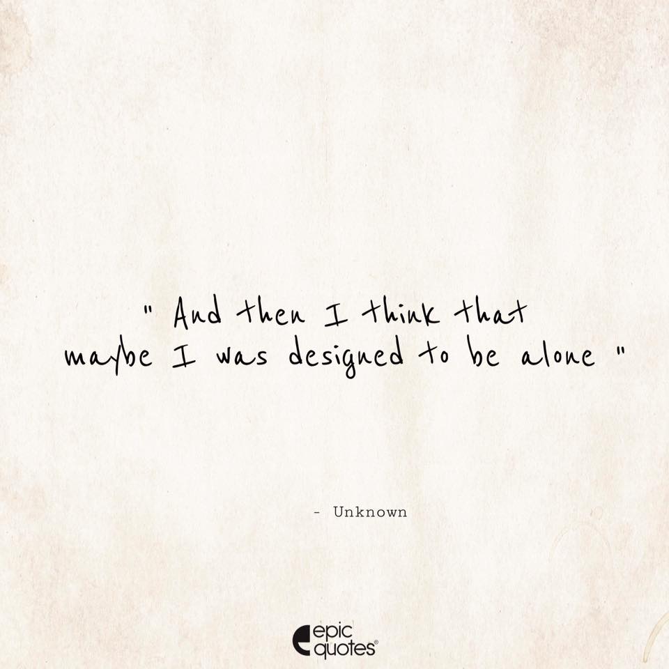 " And then I think that maybe I was designed to be alone. "