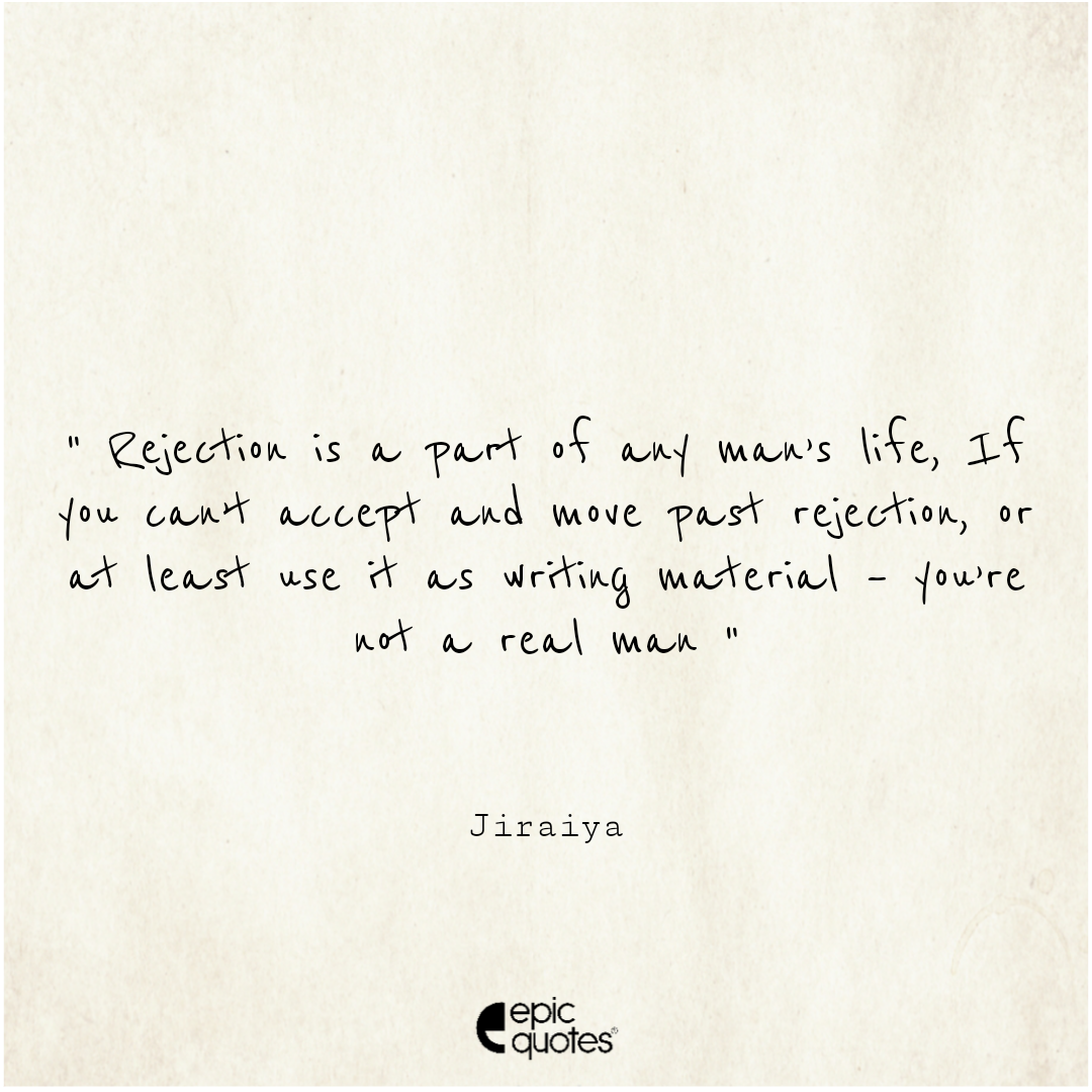 Rejection is a part of any man’s life. If you can’t accept and move past rejection, or at least use it as writing material – you’re not a real man Categories Anime " Rejection is a part of any man’s life. If you can’t accept and move past rejection, or at least use it as writing material – you’re not a real man " Post author By Frady Lal Post date September 30, 2020
