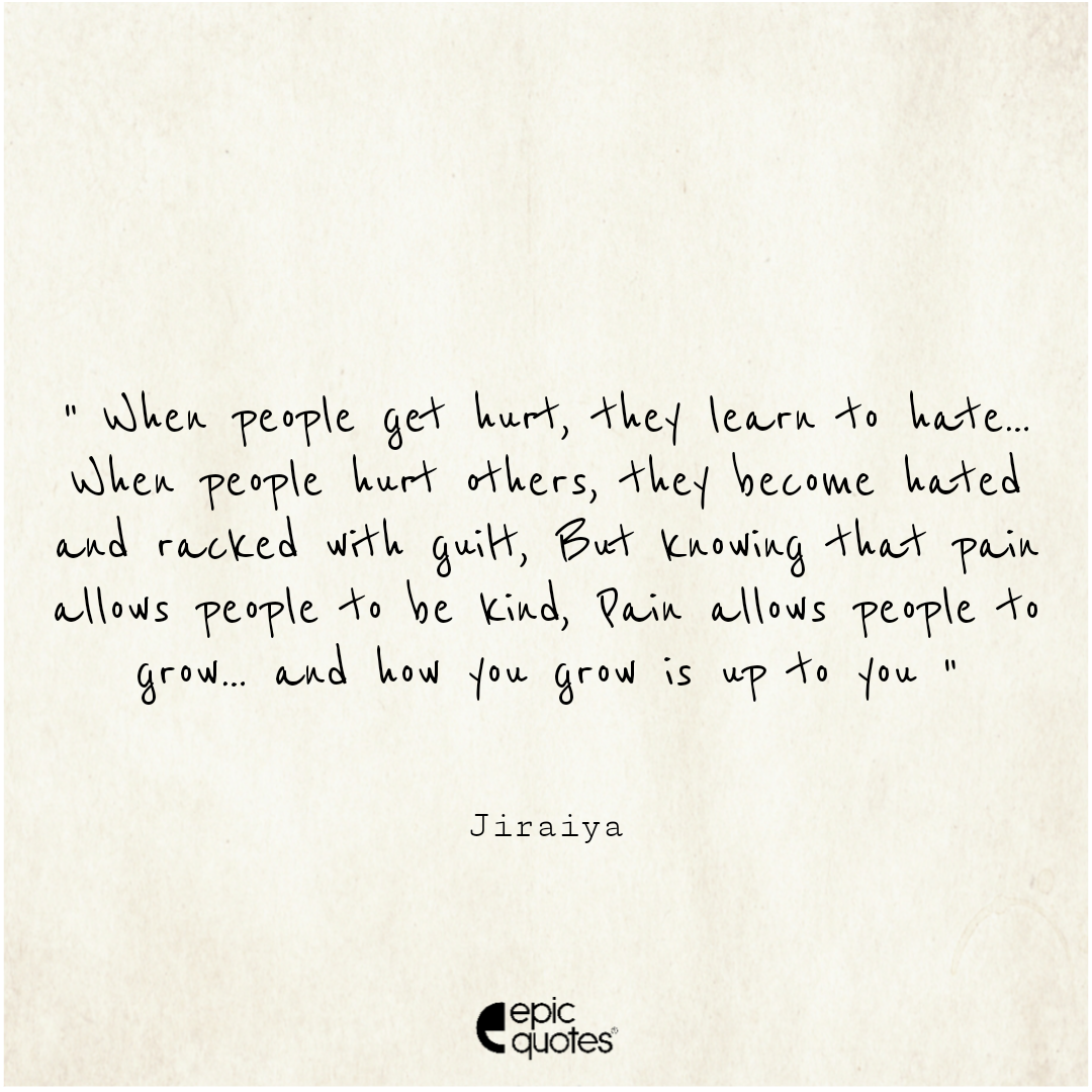 When people get hurt, they learn to hate… When people hurt others, they become hated and racked with guilt. But knowing that pain allows people to be kind. Pain allows people to grow… and how you grow is up to you Categories Anime " When people get hurt, they learn to hate… When people hurt others, they become hated and racked with guilt. But knowing that pain allows people to be kind. Pain allows people to grow… and how you grow is up to you " Post author By Frady Lal Post date September 30, 2020
