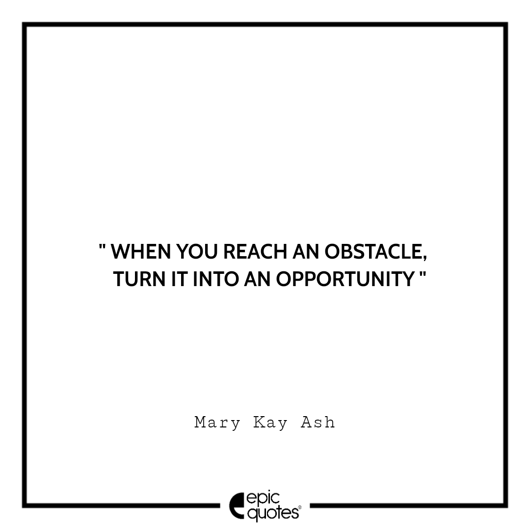 When you reach an obstacle, turn it into an opportunity. -Mary Kay Ash Categories Saturday " When you reach an obstacle, turn it into an opportunity. -Mary Kay Ash " Post author By Shubham Post date April 1, 2022