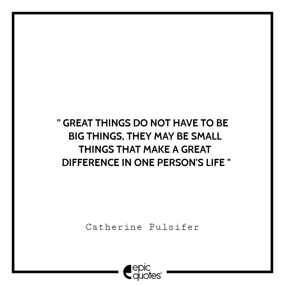 Great things do not have to be big things, they may be small things that make a great difference in one person's life. -Catherine Pulsifer Categories Saturday " Great things do not have to be big things, they may be small things that make a great difference in one person’s life. -Catherine Pulsifer " Post author By Shubham Post date April 1, 2022
