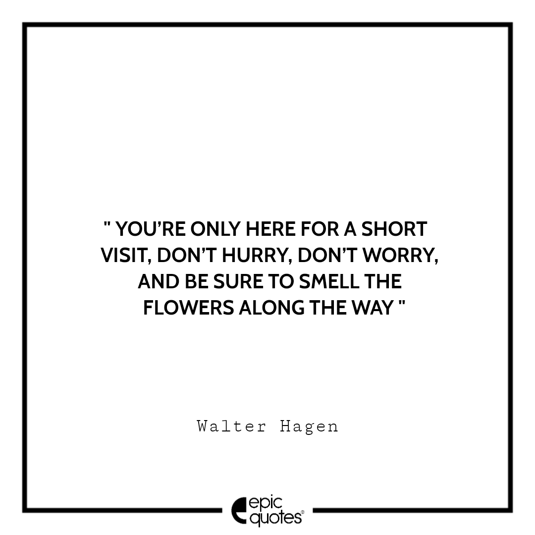 You’re only here for a short visit, Don’t hurry, don’t worry, And be sure to smell the flowers along the way. -Walter Hagen Categories Saturday " You’re only here for a short visit, Don’t hurry, don’t worry, And be sure to smell the flowers along the way. -Walter Hagen " Post author By Shubham Post date April 1, 2022