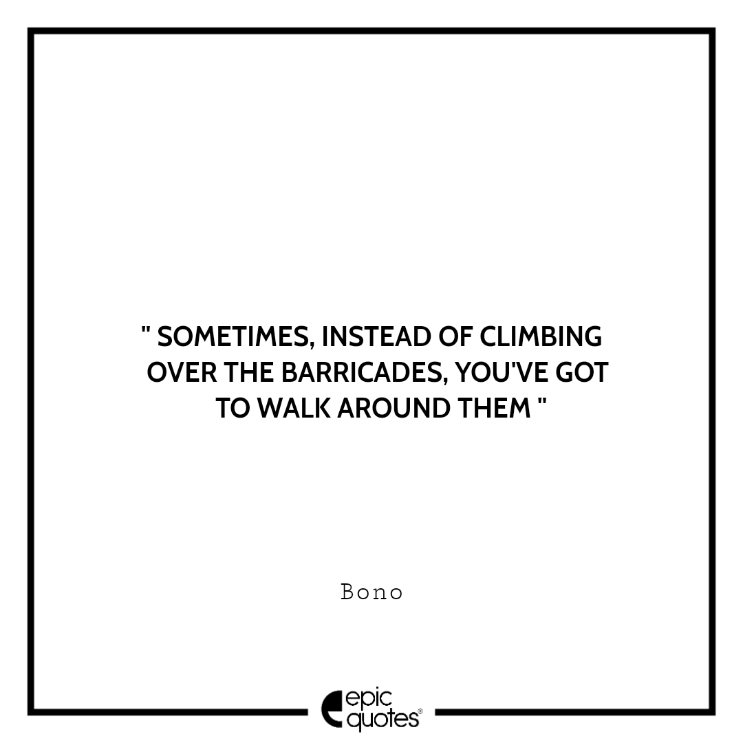Sometimes, instead of climbing over the barricades, you've got to walk around them. -Bono Categories Tuesday " Sometimes, instead of climbing over the barricades, you’ve got to walk around them. -Bono " Post author By Shubham Post date October 6, 2020