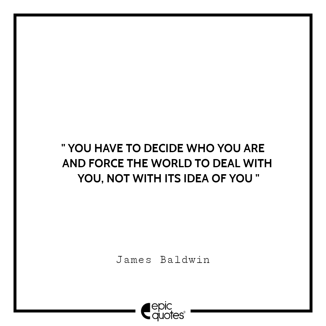You have to decide who you are and force the world to deal with you, not with its idea of you. -James Baldwin Categories James Baldwin " You have to decide who you are and force the world to deal with you, not with its idea of you. -James Baldwin " Post author By Shubham Post date October 2, 2020