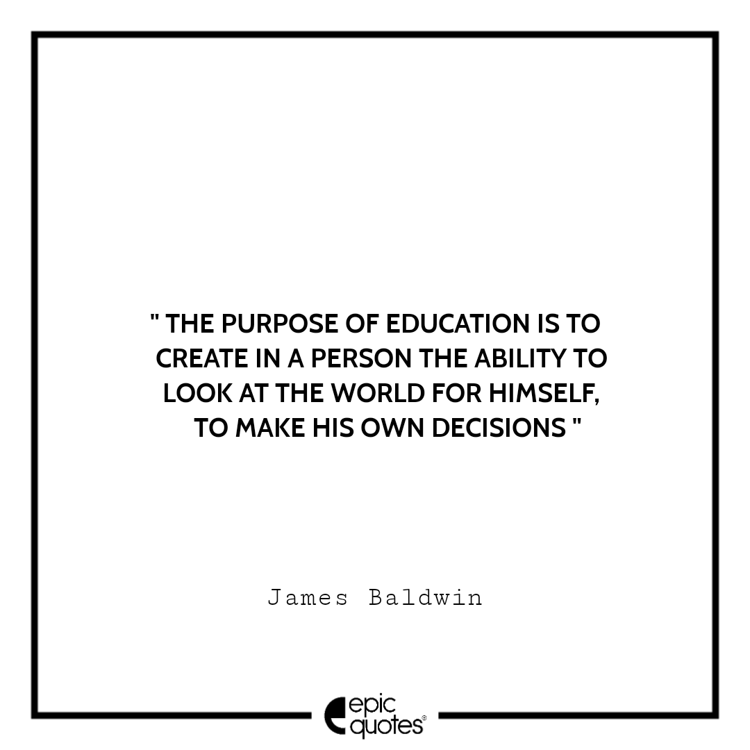 The purpose of education is to create in a person the ability to look at the world for himself, to make his own decisions. -James Baldwin Categories James Baldwin " The purpose of education is to create in a person the ability to look at the world for himself, to make his own decisions. -James Baldwin " Post author By Shubham Post date October 2, 2020