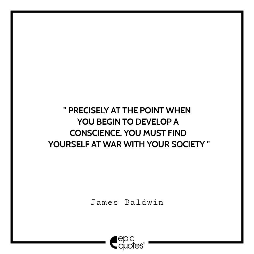 Precisely at the point when you begin to develop a conscience, you must find yourself at war with your society. -James Baldwin Categories James Baldwin " Precisely at the point when you begin to develop a conscience, you must find yourself at war with your society. -James Baldwin " Post author By Shubham Post date October 2, 2020