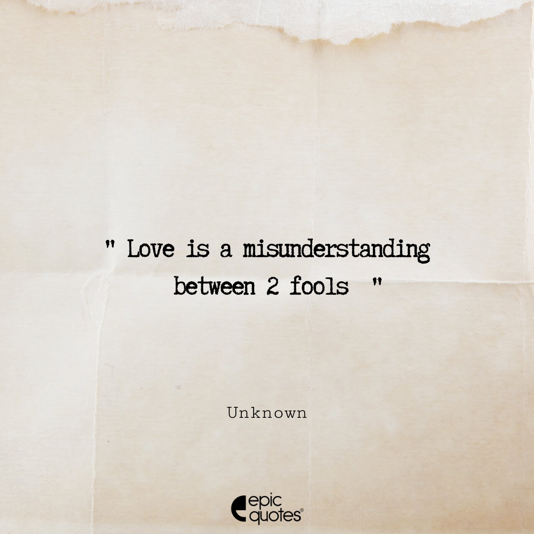 Love is a misunderstanding between 2 fools Categories Epic Quotes Main " Love is a misunderstanding between 2 fools " Post author By Tanya Suyal Post date January 25, 2022 Tags Epic Quotes, Funny Quotes, Inspiring, Life, Life Quotes, quotes