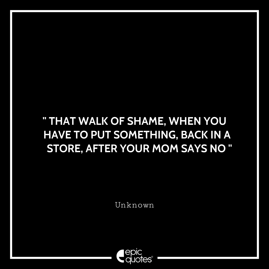 That walk of shame, when you have to put something, back in a store, after your mom says no. Categories Epic Quotes Main " That walk of shame, when you have to put something, back in a store, after your mom says no. " Post author By Tanya Suyal Post date January 27, 2022 Tags Epic Quotes, Funny Quotes, inspi, Life, Life Quotes, quotes