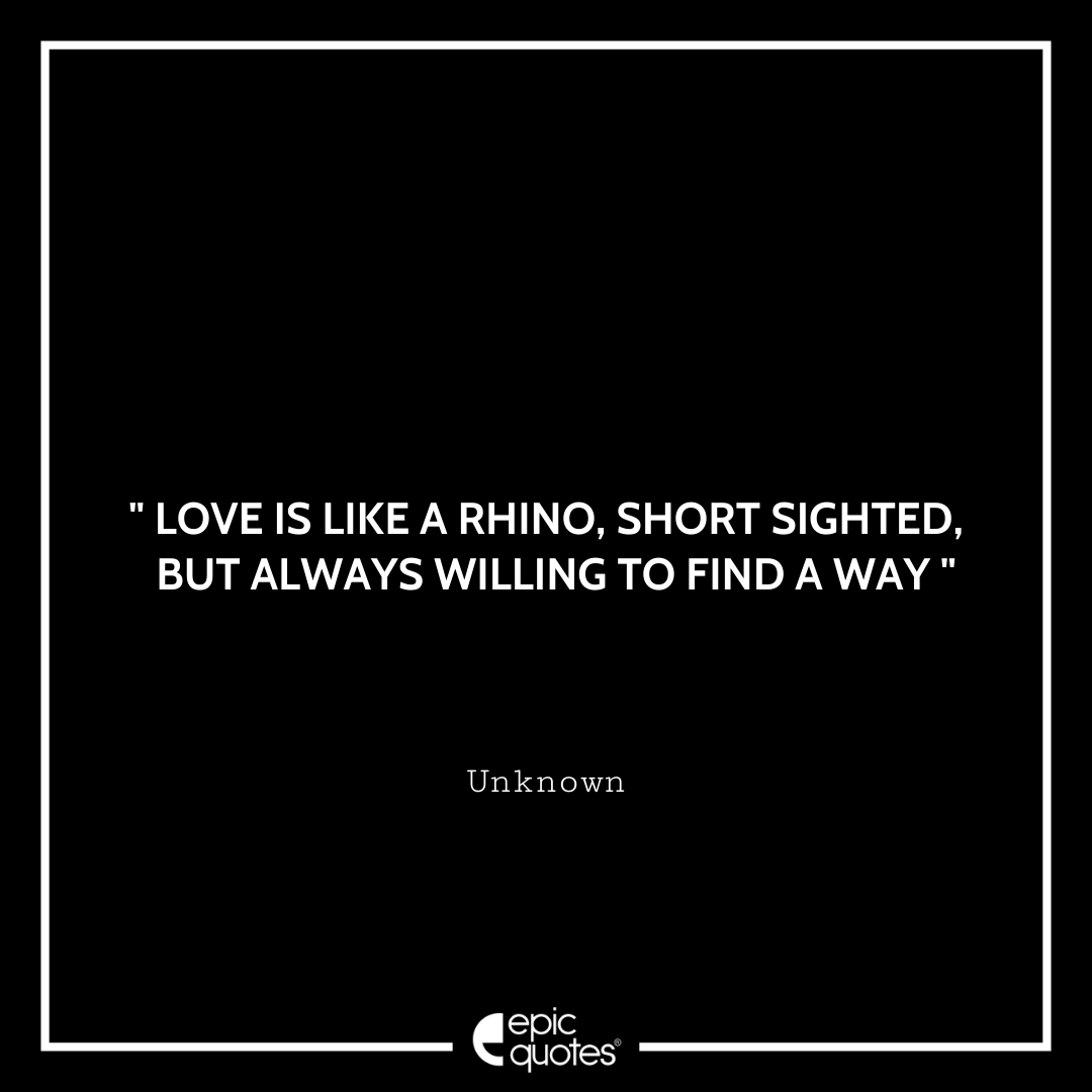 Love is like a rhino, short sighted, but always willing to find a way Categories Epic Quotes Main " Love is like a rhino, short sighted, but always willing to find a way " Post author By Tanya Suyal Post date January 29, 2022 Tags Epic Quotes, Funny Quotes, Inspiring, Life, Life Quotes, quotes