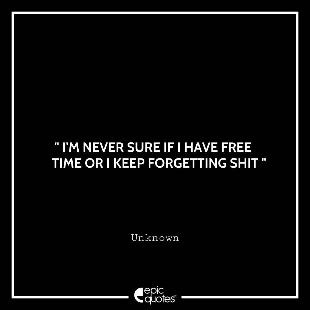 I'm never sure if I have free time or I keep forgetting shit Categories Epic Quotes Main " I’m never sure if I have free time or I keep forgetting shit " Post author By Tanya Suyal Post date February 4, 2022 Tags Epic Quotes, Funny Quotes, Inspiring, Life, Life Quotes, quotes