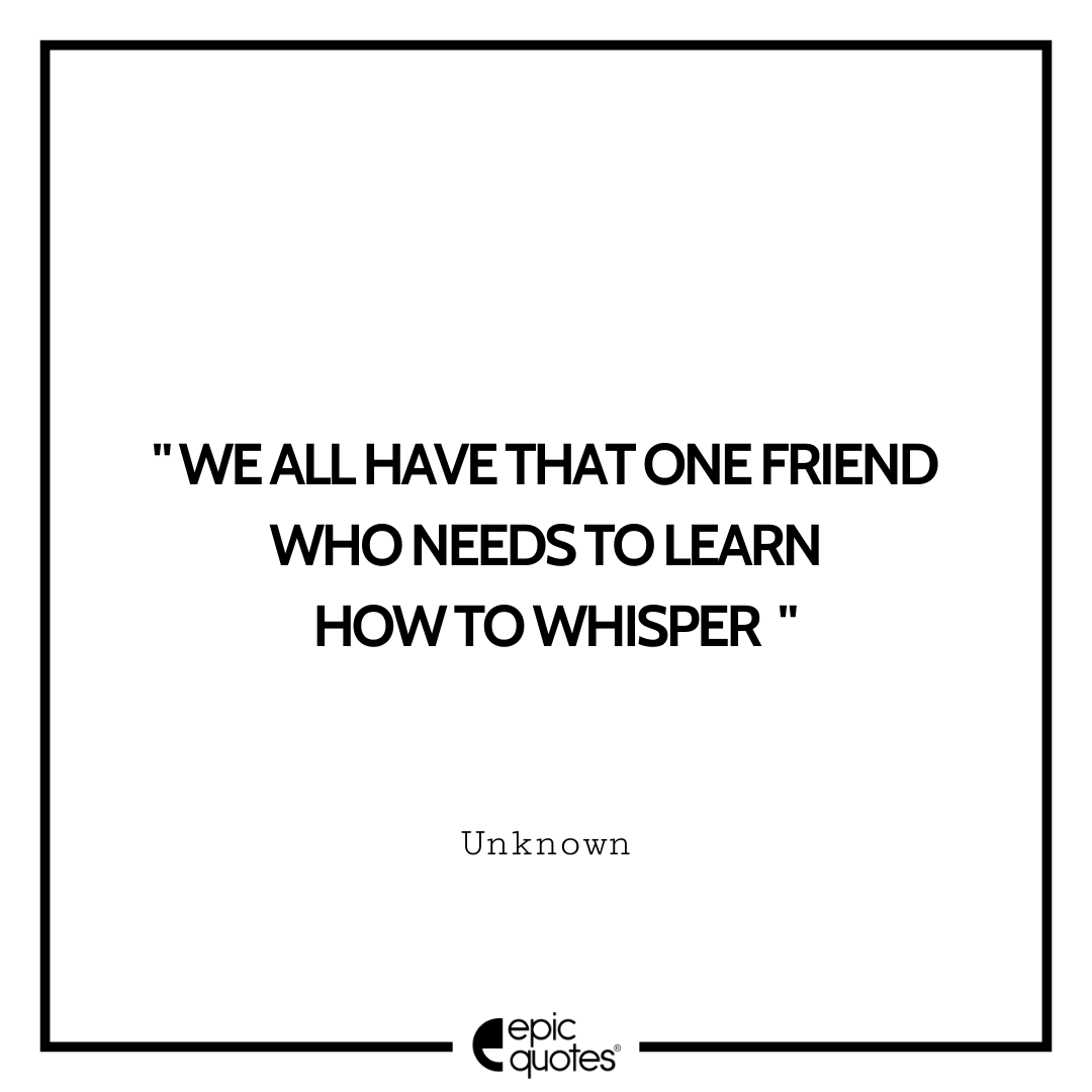 We all have that one friend who needs to learn how to whisper Categories Epic Quotes Main " We all have that one friend who needs to learn how to whisper " Post author By Tanya Suyal Post date December 16, 2021 Tags Epic Quotes, Funny Quotes, Inspiring, Life, Life Quotes, quotes