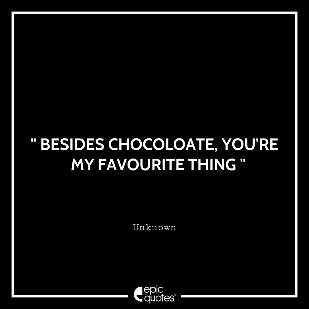 Besides chocoloate, you're my favourite thing Categories Epic Quotes Main " Besides chocoloate, you’re my favourite thing " Post author By Tanya Suyal Post date December 21, 2021 Tags Epic Quotes, Funny Quotes, Inspiring, Life, Life Quotes, quotes