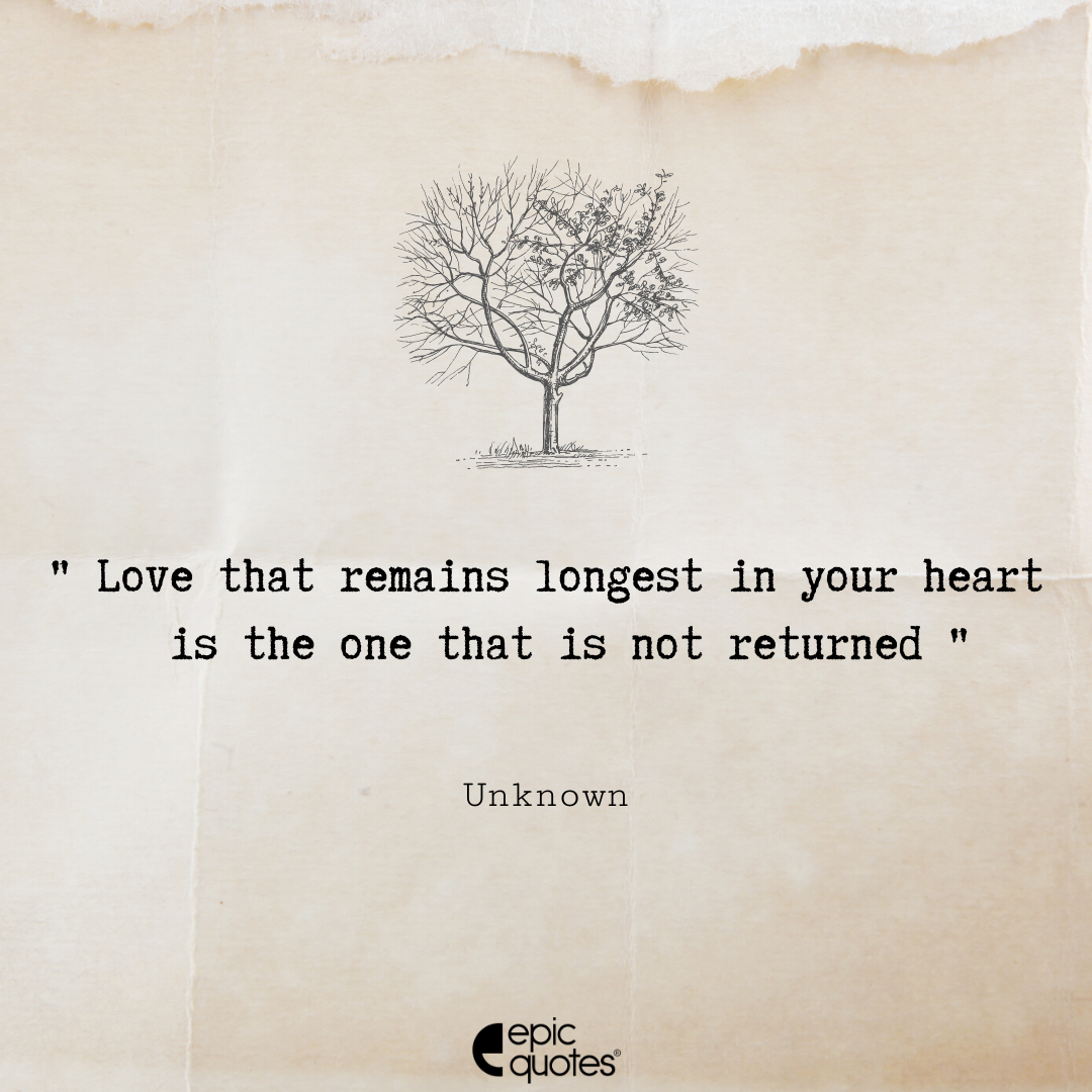 Love that remains longest in your heart is the one that is not returned Categories Epic Quotes Main " Love that remains longest in your heart is the one that is not returned " Post author By Tanya Suyal Post date December 29, 2021 Tags Epic Quotes, Funny Quotes, Inspiring, Life, Life Quotes, quotes