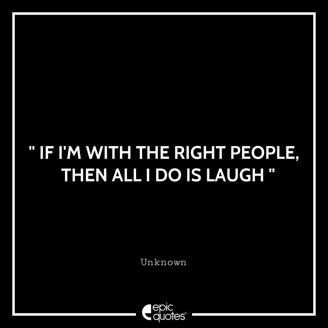 If I'm with the right people, then all I do is laugh Categories Epic Quotes Main " If I’m with the right people, then all I do is laugh " Post author By Tanya Suyal Post date December 24, 2021 Tags Epic Quotes, Funny Quotes, Inspiring, Life, Life Quotes, quotes