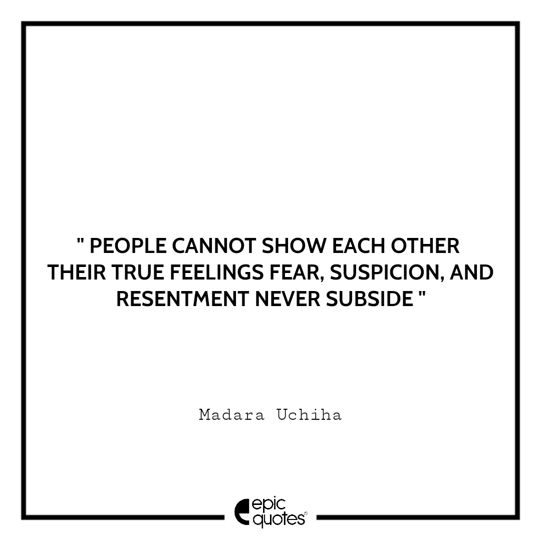 13 People cannot show each other their true feelings. Fear, suspicion, and resentment never subside. – Madara Uchiha