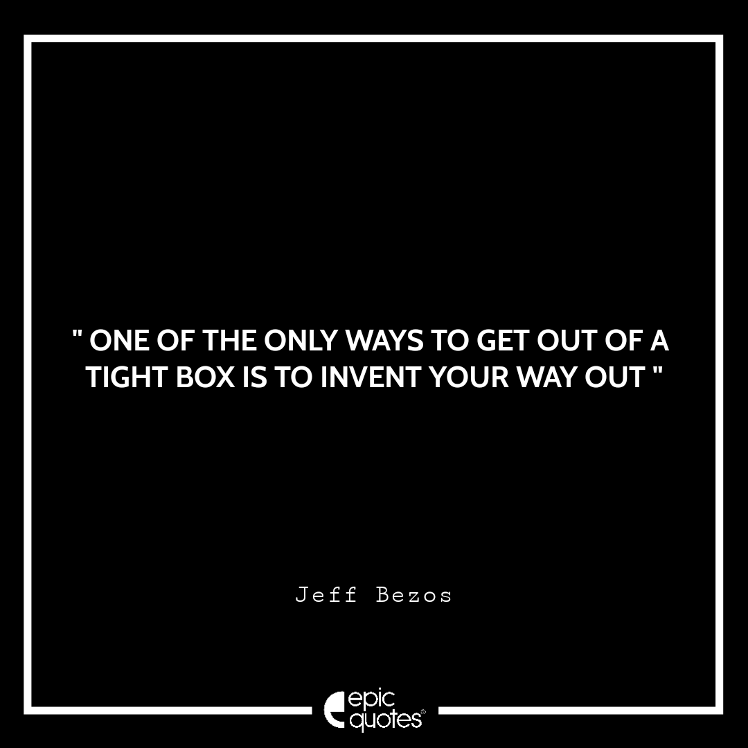 One of the only ways to get out of a tight box is to invent your way out Categories Jeff Bezos " One of the only ways to get out of a tight box is to invent your way out " Post author By Shubham Post date April 1, 2022