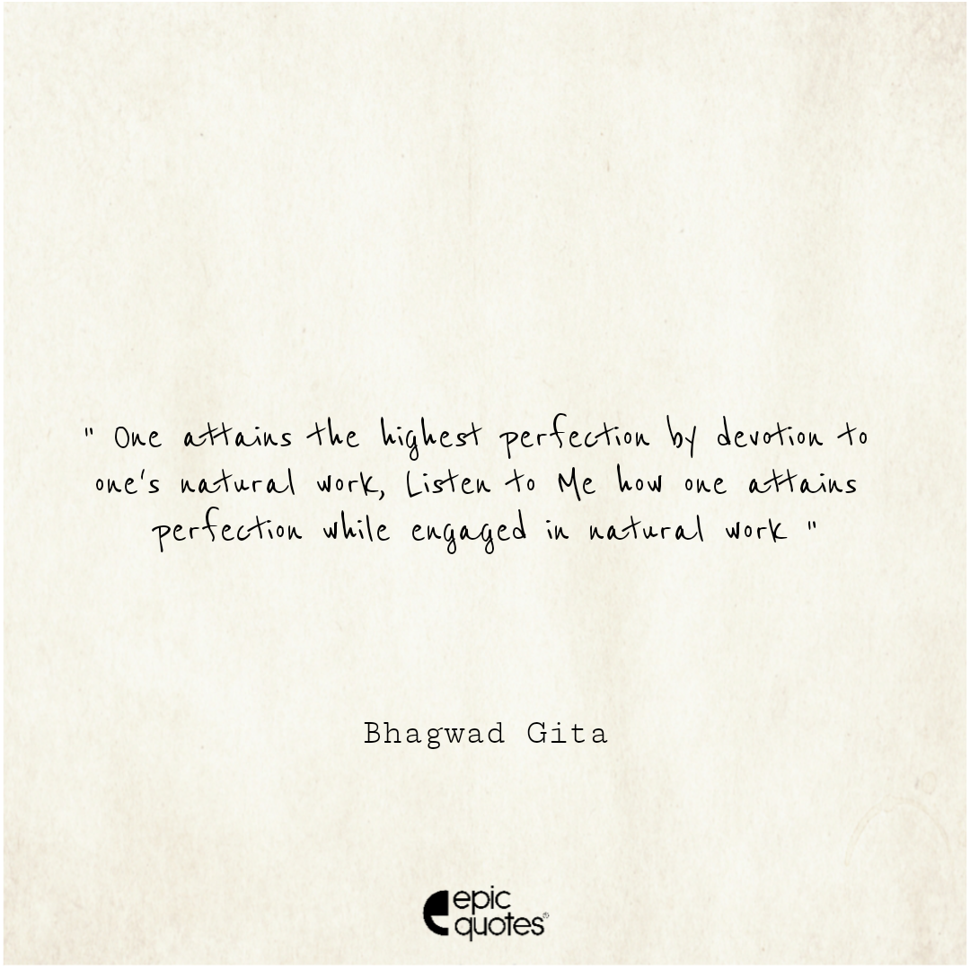 One attains the highest perfection by devotion to one's natural work. Listen to Me how one attains perfection while engaged in natural work Categories Bhagavad Gita " One attains the highest perfection by devotion to one’s natural work. Listen to Me how one attains perfection while engaged in natural work " Post author By Frady Lal Post date September 7, 2020