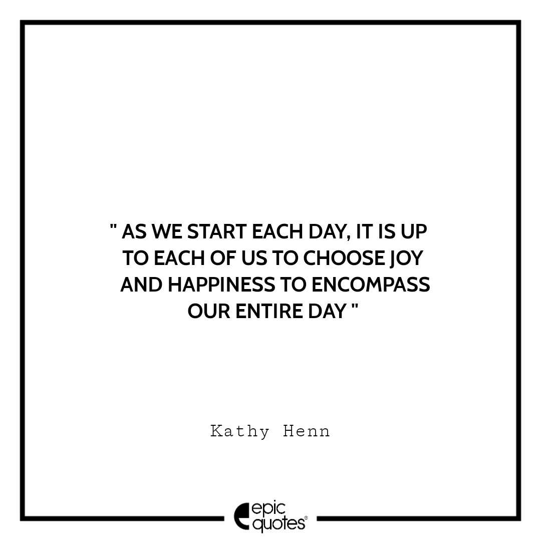As we start each day, it is up to each of us to choose joy and happiness to encompass our entire day. -Kathy Henn Categories Monday " As we start each day, it is up to each of us to choose joy and happiness to encompass our entire day. -Kathy Henn " Post author By Shubham Post date March 31, 2022