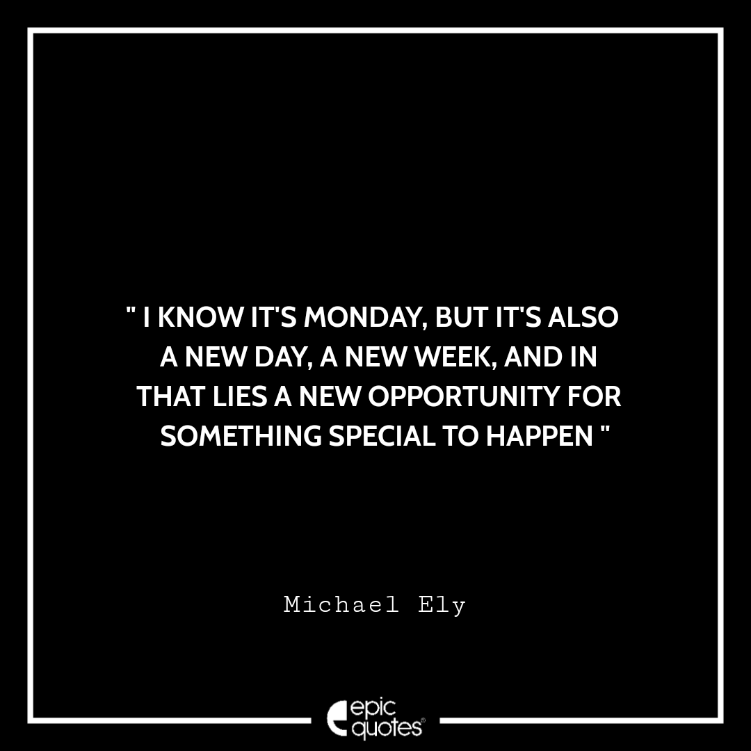 I know it's Monday, but it's also a new day, a new week, and in that lies a new opportunity for something special to happen. –Michael Ely Categories Monday " I know it’s Monday, but it’s also a new day, a new week, and in that lies a new opportunity for something special to happen. –Michael Ely " Post author By Shubham Post date March 31, 2022