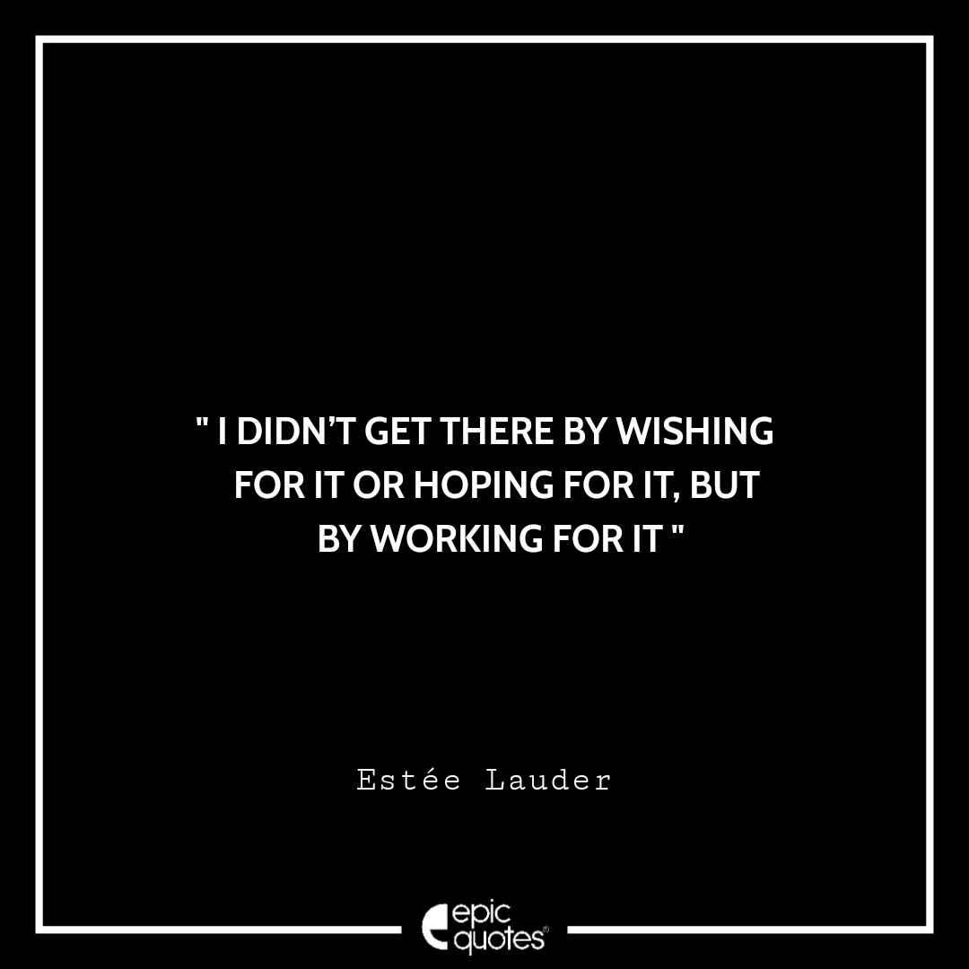 I didn’t get there by wishing for it or hoping for it, but by working for it. -Estée Lauder Categories Monday " I didn’t get there by wishing for it or hoping for it, but by working for it. -Estée Lauder " Post author By Shubham Post date March 31, 2022
