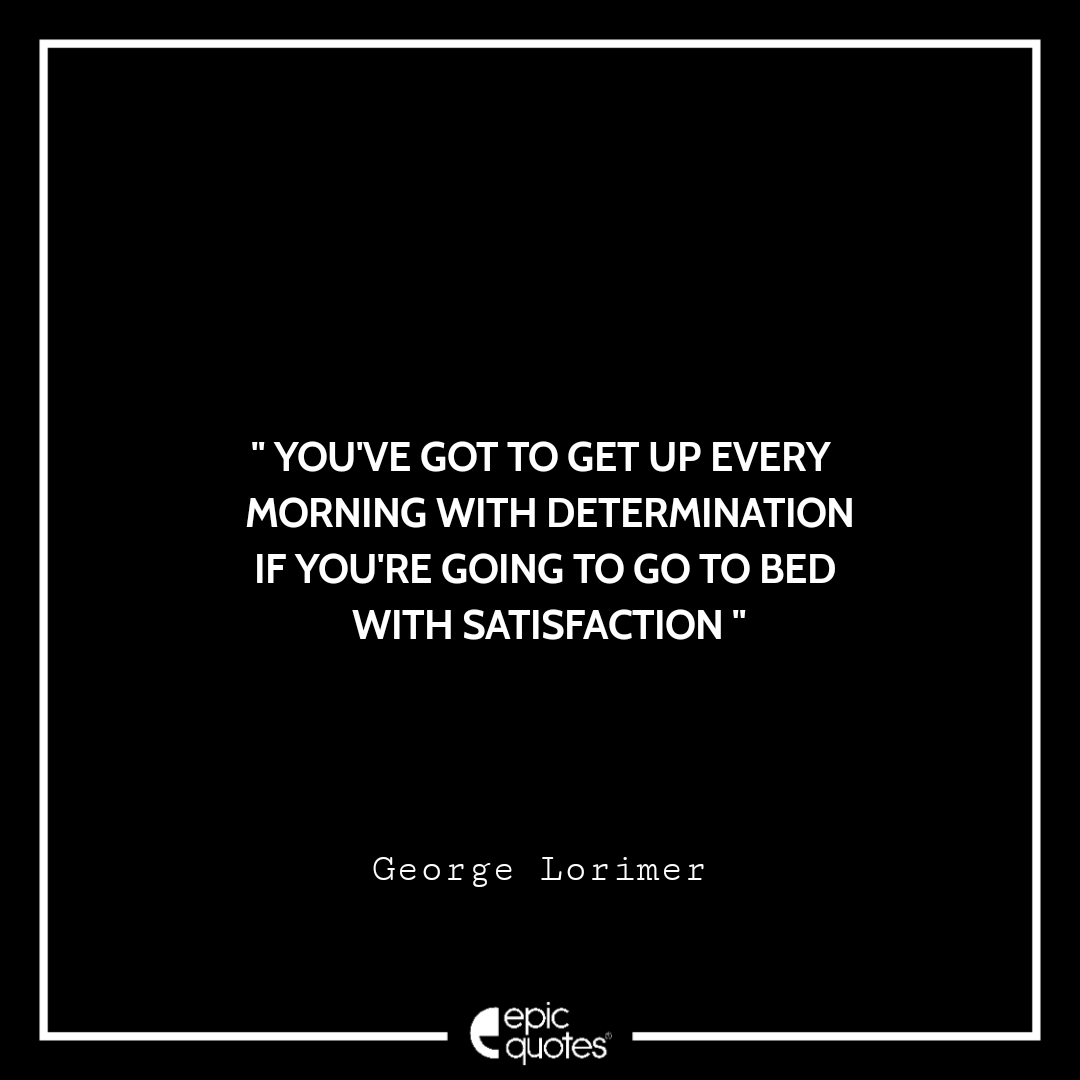 You've got to get up every morning with determination if you're going to go to bed with satisfaction. –George Lorimer Categories Monday " You’ve got to get up every morning with determination if you’re going to go to bed with satisfaction. –George Lorimer " Post author By Shubham Post date March 31, 2022